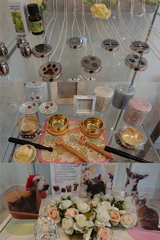 おりん、骨壷、お位牌、線香・ろうそくから遺骨アクセサリーまで、自身も愛犬家であるスタッフがこだわってセレクトしたペット仏具や供養グッズを多数取り揃えています。